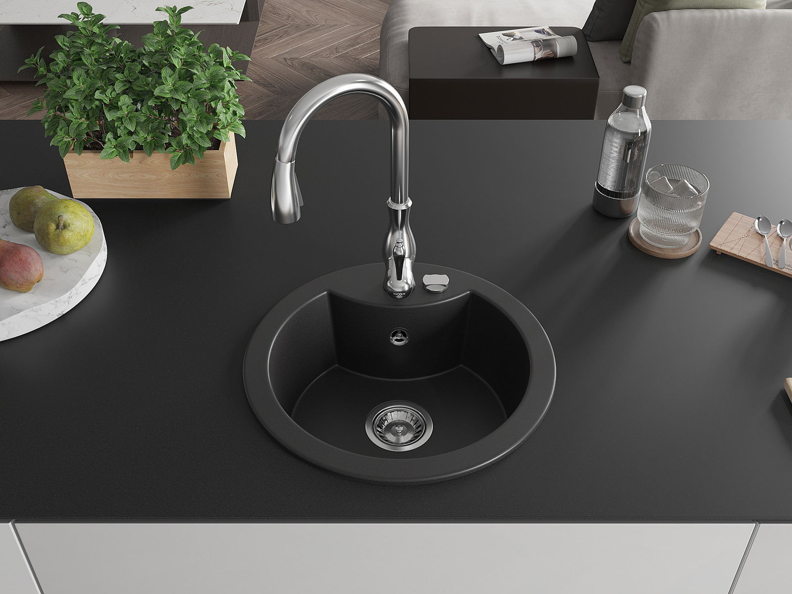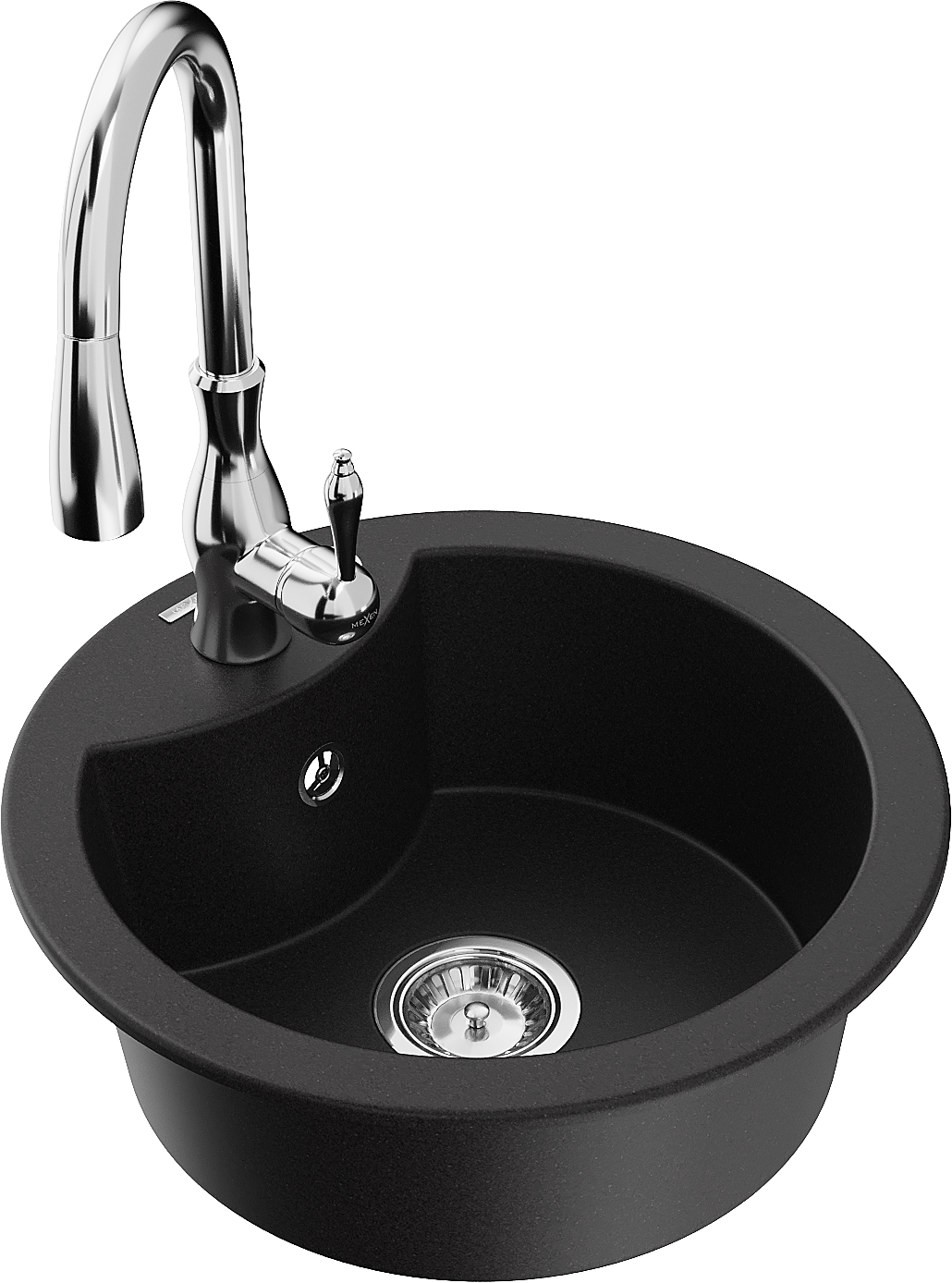 Mexen Diego granieten spoelbak 1-kompartment met keukenkraan Savita, zwart - 6512-77-672601-00