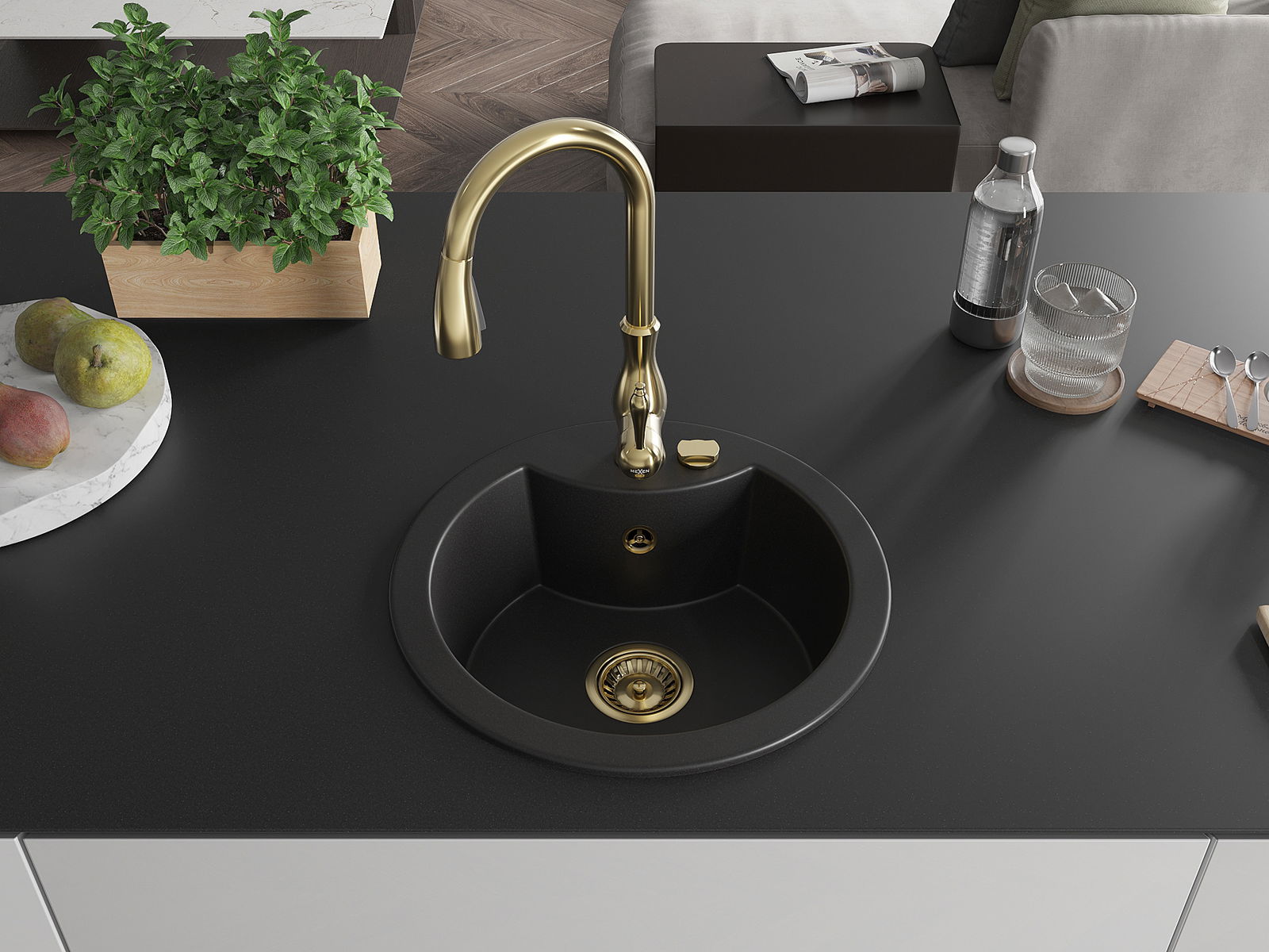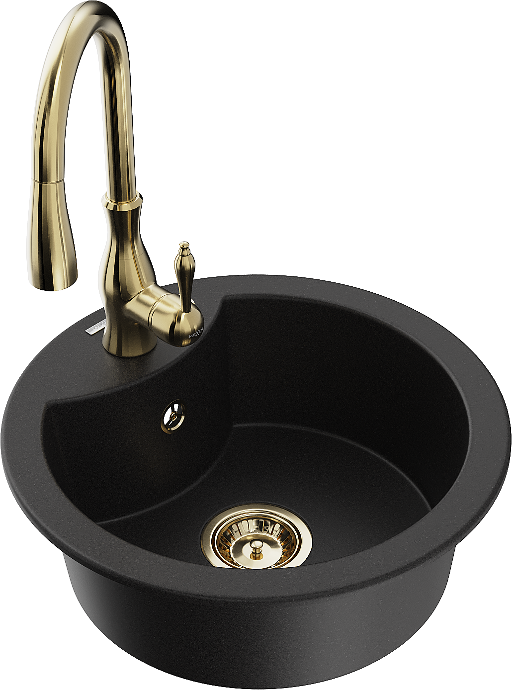 Mexen Diego granieten gootsteen 1-kommer met keukenkraan Savita, zwart - 6512-77-672601-50