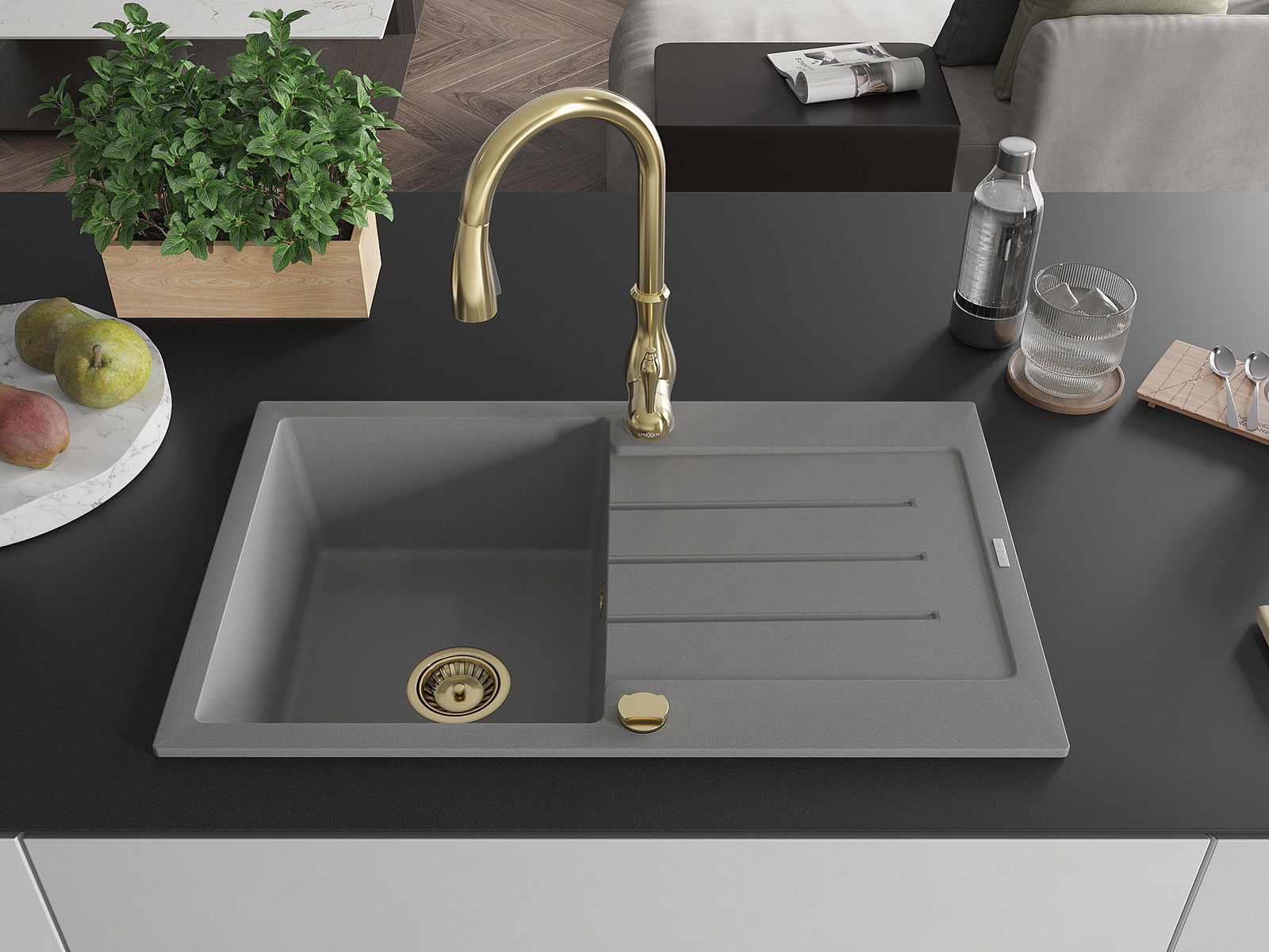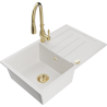 Mexen Bruno granieten gootsteen 1-kompartement met afdruiprek en keukenkraan Savita, grijs - 6513-71-672601-50