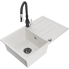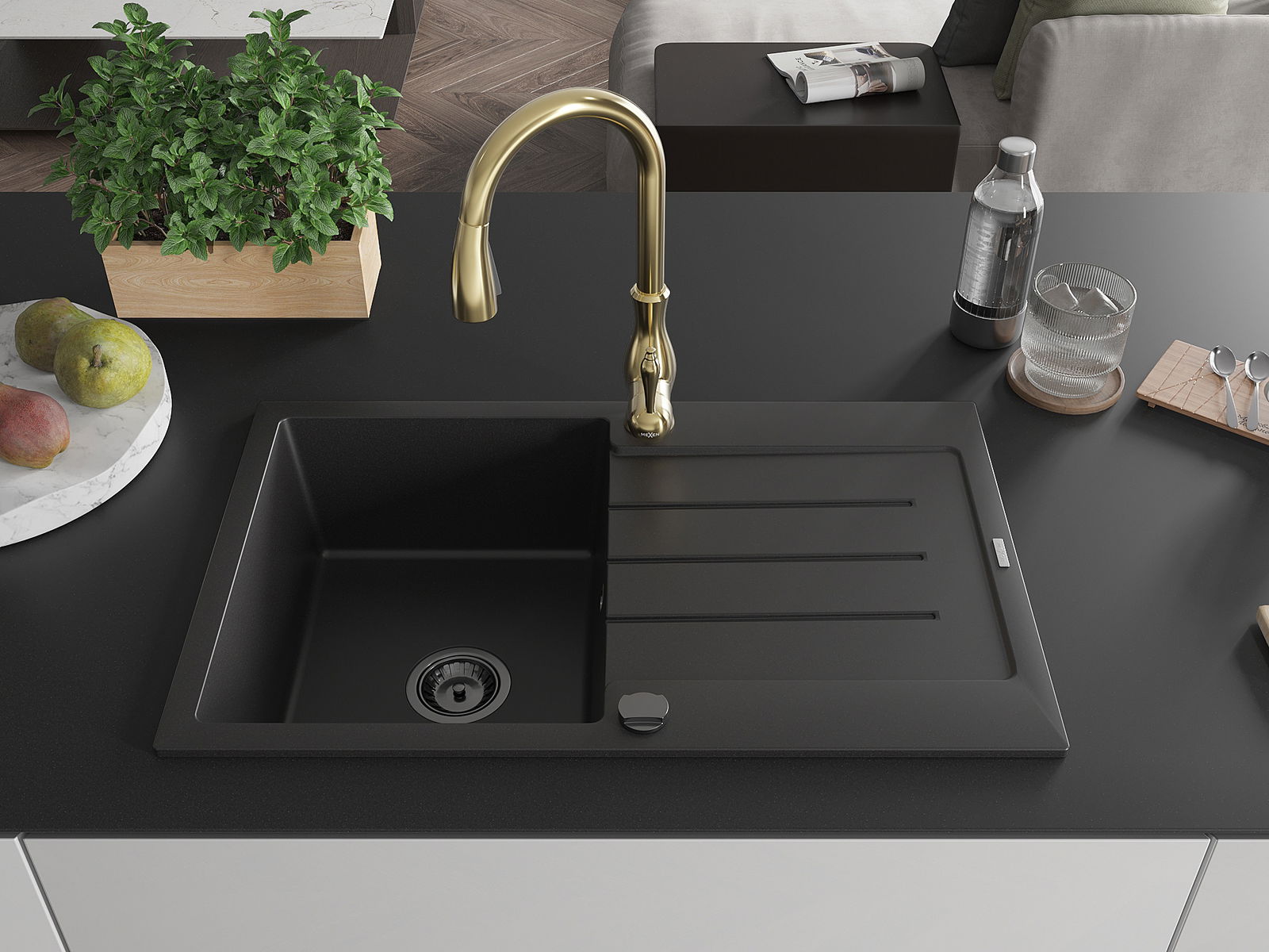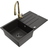 Mexen Bruno granieten gootsteen 1-komor met afdruiprek en keukenmengkraan Savita, zwart - 6513-77-672601-50-B