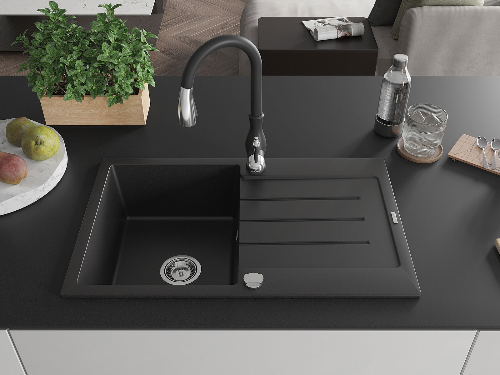 De gootsteen is gemaakt van hoogwaardig graniet. Het vormt een elegante en vooral praktische aanvulling op elke keuken, ongeacht de stijl. De hoge kwaliteit en duurzaamheid van graniet zorgen voor jarenlang gebruik.