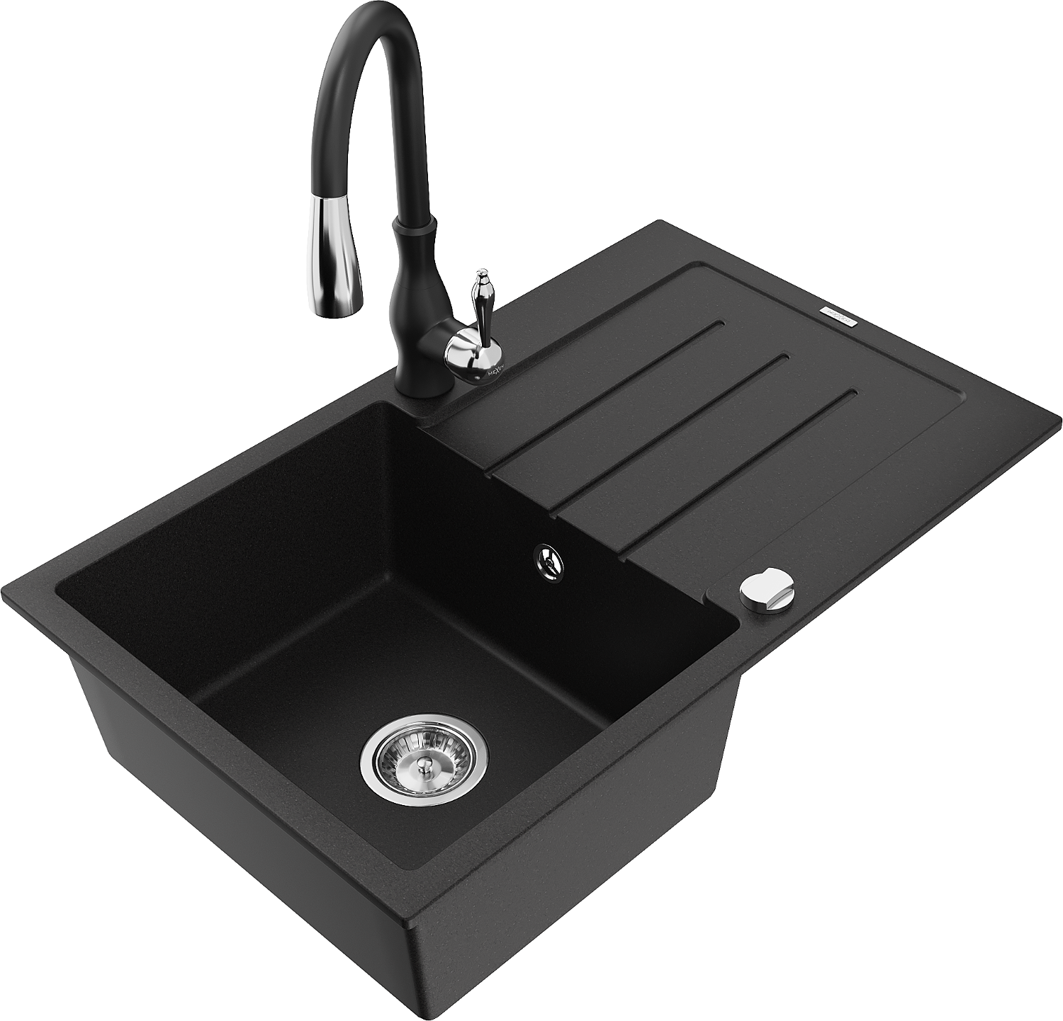 Mexen Bruno granieten spoelbak 1-kompartiment met afdruiprek en keukenmengkraan Savita, zwart - 6513-77-672601-70