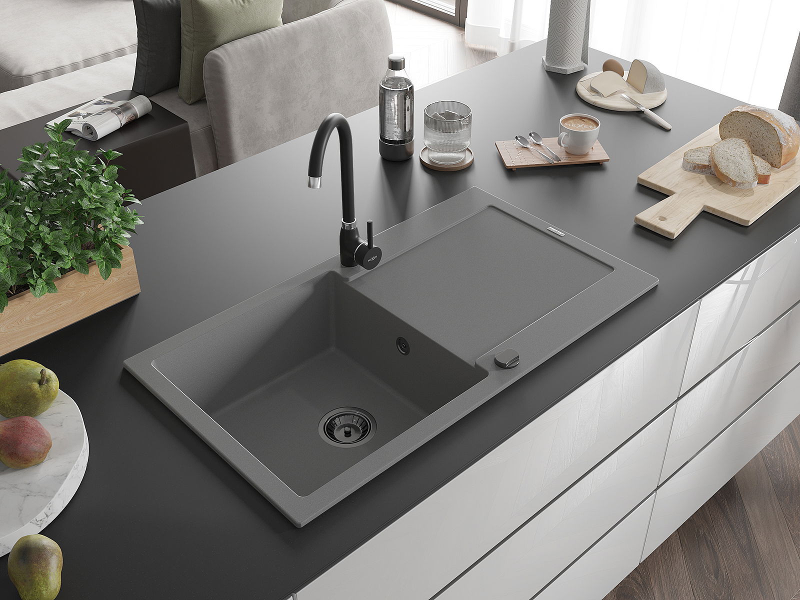 De gootsteen is gemaakt van hoogwaardig graniet. Het vormt een elegante en vooral praktische aanvulling op elke keuken, ongeacht de stijl. De hoge kwaliteit en duurzaamheid van graniet zorgen voor jarenlang gebruik.