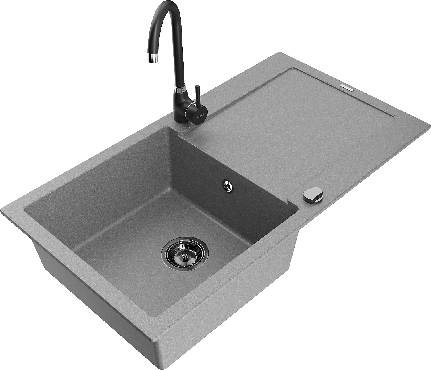Mexen Leo granieten spoelbak 1-komor met afdruiprek en keukenkraan Telma, grijs - 6501-71-670200-70-B