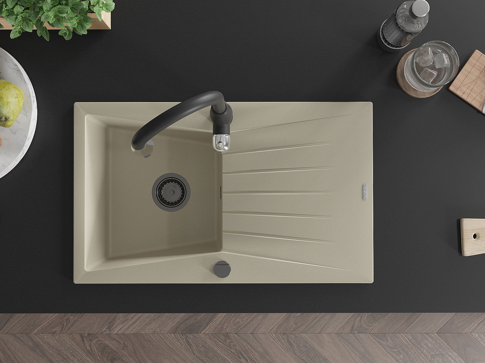 De gootsteen is gemaakt van hoogwaardig graniet. Het vormt een elegante en vooral praktische aanvulling op elke keuken, ongeacht de stijl. De hoge kwaliteit en duurzaamheid van graniet zorgen voor jarenlang gebruik.