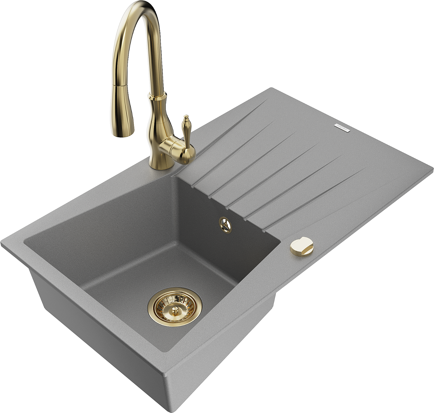 Mexen Cesar granieten spoelbak 1-komorige met afdruiprek en keukenkraan Savita, grijs - 6514-71-672601-50