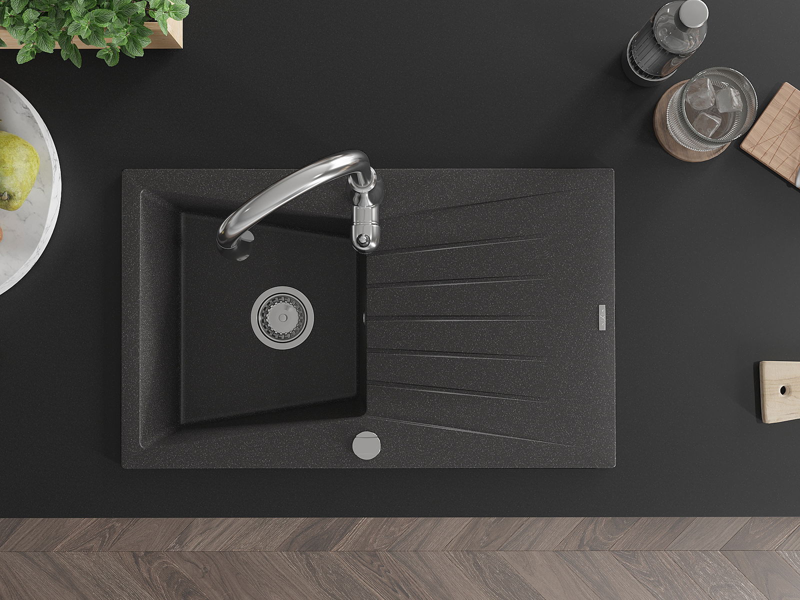 De gootsteen is gemaakt van hoogwaardig graniet. Het vormt een elegante en vooral praktische aanvulling op elke keuken, ongeacht de stijl. De hoge kwaliteit en duurzaamheid van graniet zorgen voor jarenlang gebruik.