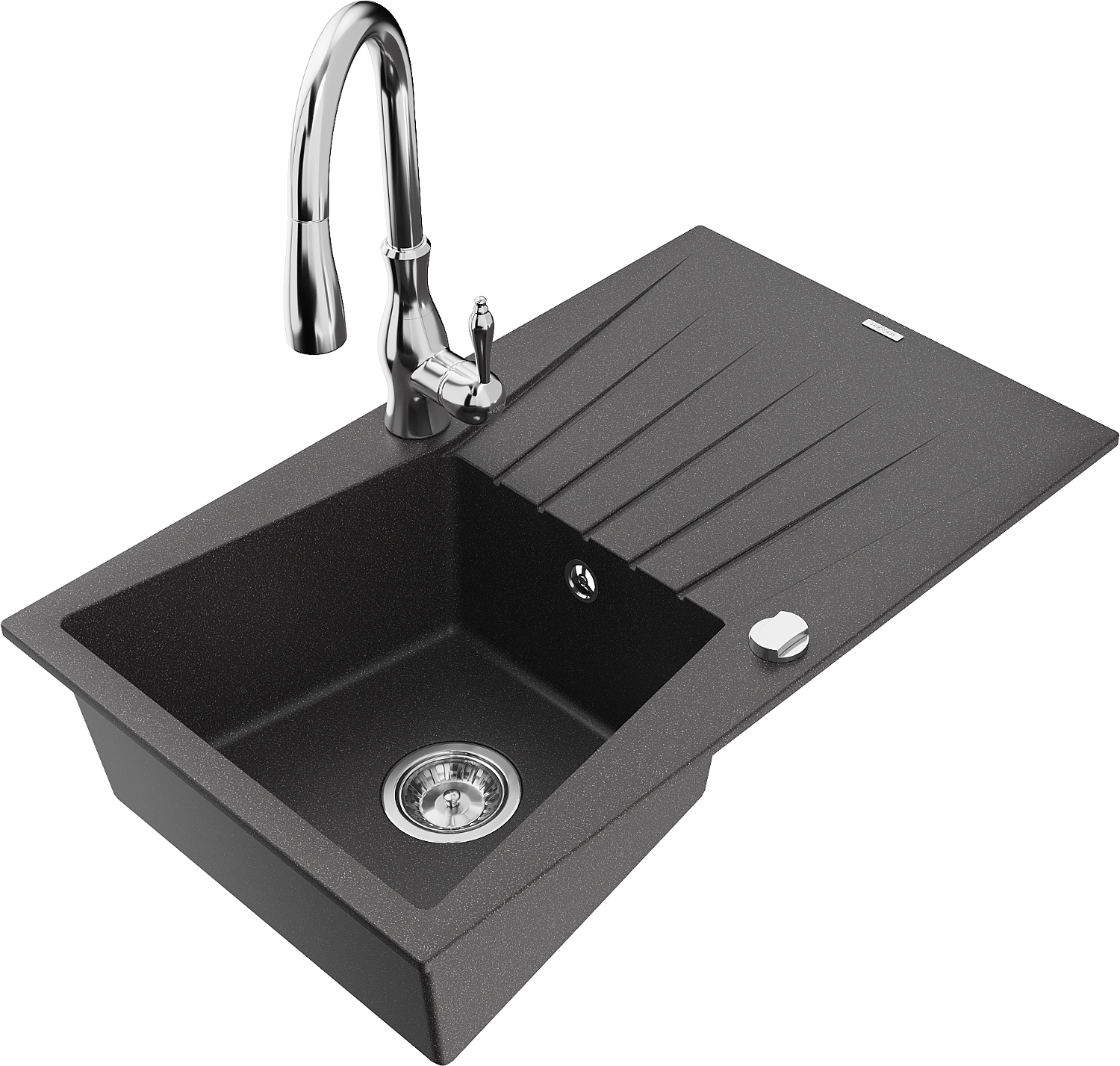 Mexen Cesar granieten spoelbak 1-komor met afdruiprek en keukenkraan Savita, zwart gespikkeld - 6514-76-672601-00