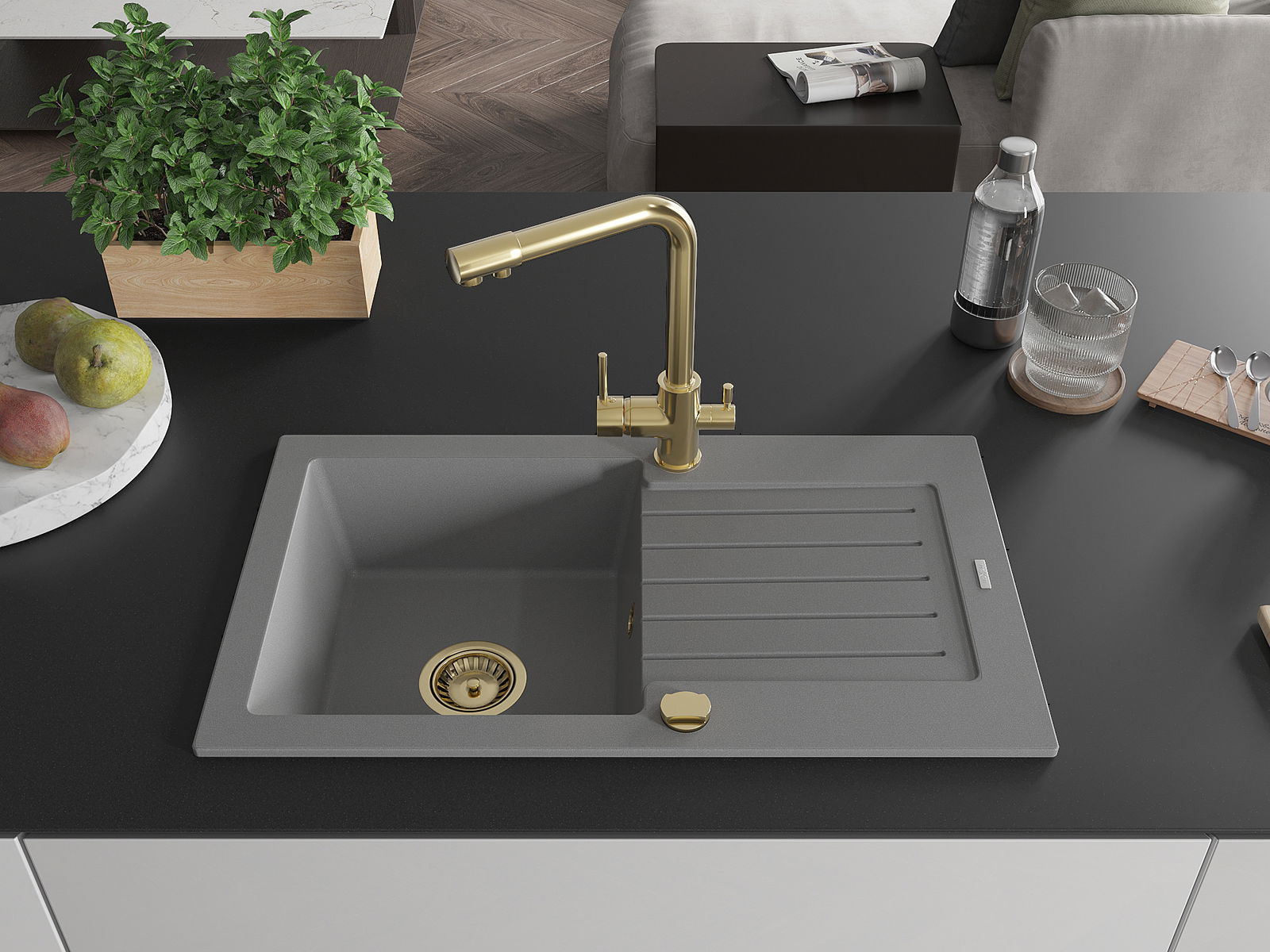De gootsteen is gemaakt van hoogwaardig graniet. Het vormt een elegante en vooral praktische aanvulling op elke keuken, ongeacht de stijl. De hoge kwaliteit en duurzaamheid van graniet zorgen voor jarenlang gebruik.