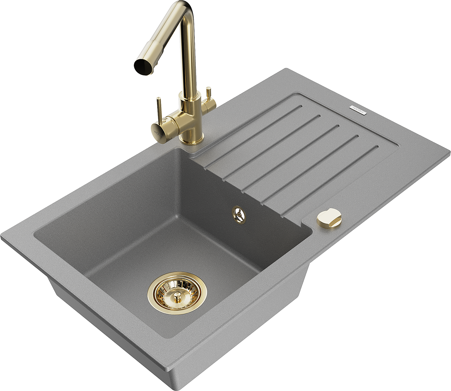 Mexen Pablo granieten spoelbak met 1 bak, afdruiprek en Duero keukenkraan, grijs - 6510-71-671600-50