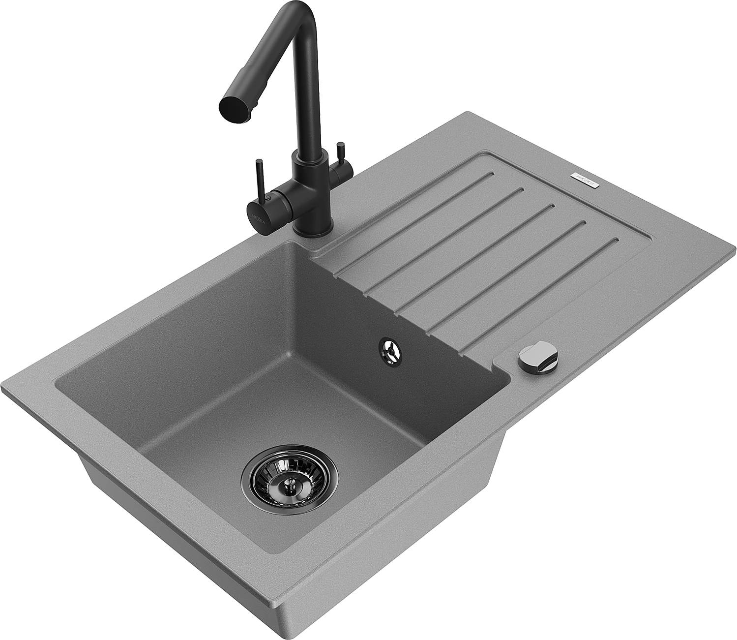 Mexen Pablo granieten spoelbak 1-kompartiment met afdruiprek en keukenkraan Duero, grijs - 6510-71-671600-70-B