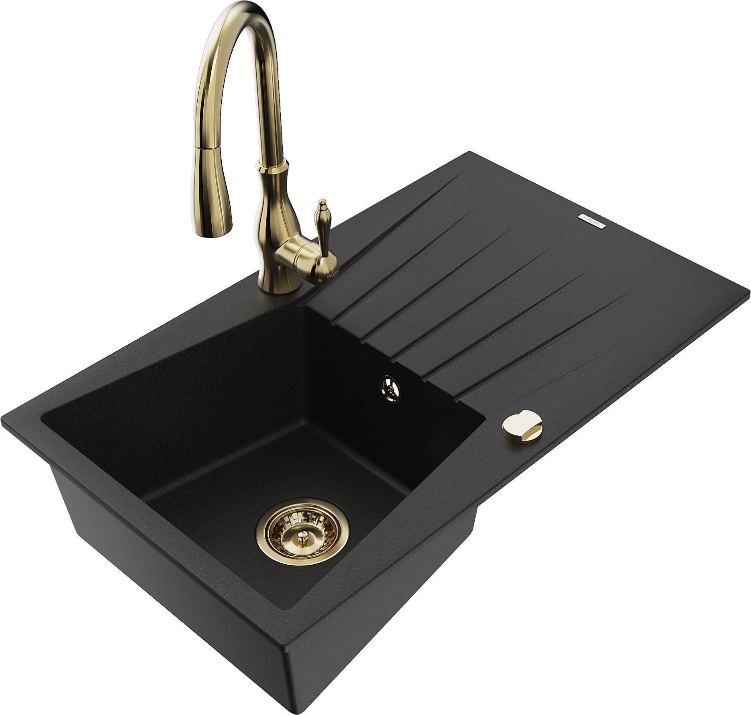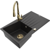 Mexen Cesar granieten spoelbak met 1 spoelbak met afdruiprek en keukenkraan Savita, zwart - 6514-77-672601-50