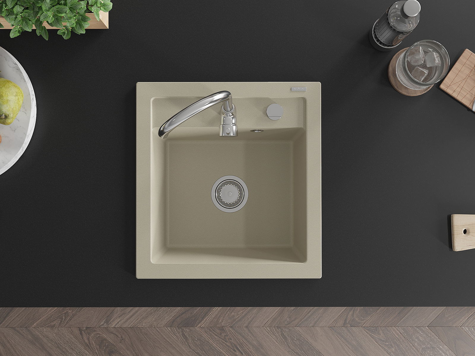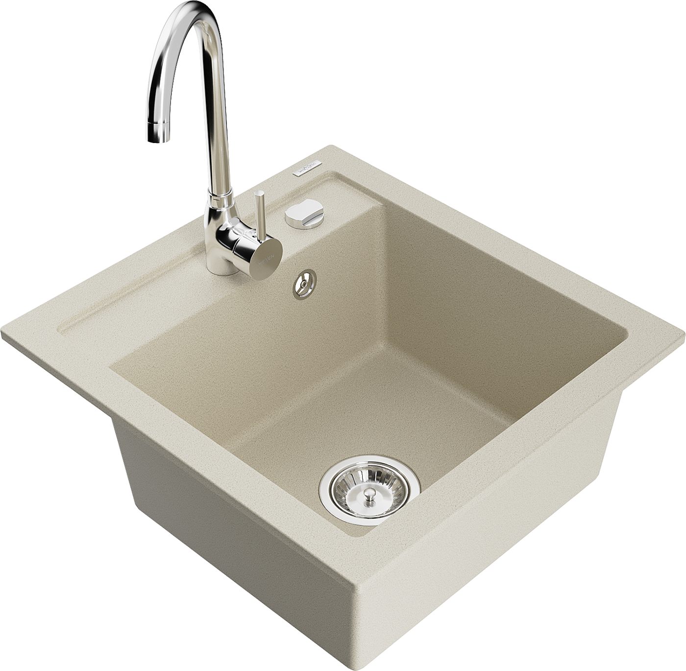 Mexen Vito granieten spoelbak 1-komers met Telma keukenkraan, beige - 6503-69-670200-00
