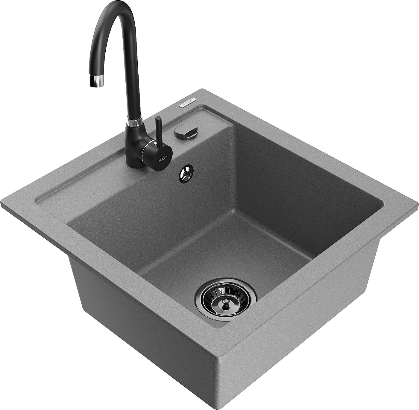 Mexen Vito granieten spoelbak met één kom met keukenkraan Telma, grijs - 6503-71-670200-70-B