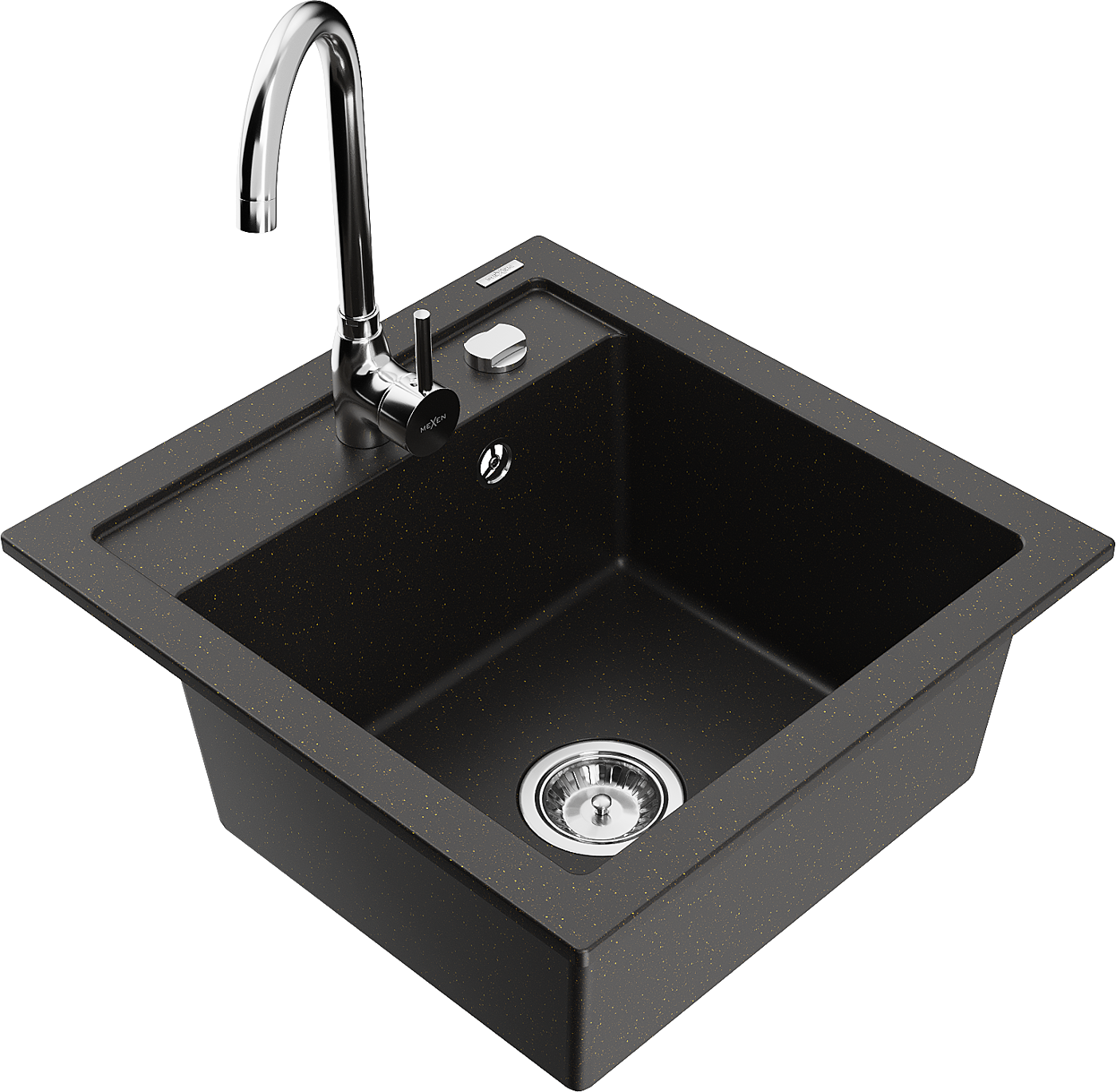 Mexen Vito granieten gootsteen met 1 bak en Telma keukenkraan, zwart/goud metallic - 6503-75-670200-00