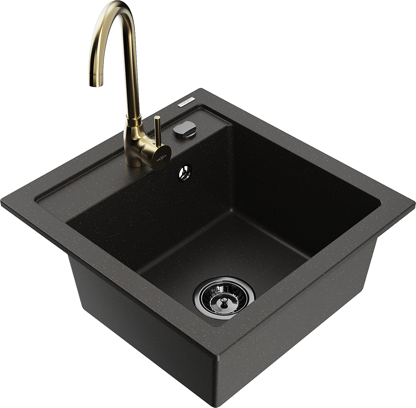 Mexen Vito granieten spoelbak 1-komers met Telma keukenmengkraan, zwart/goud metallic - 6503-75-670200-50-B