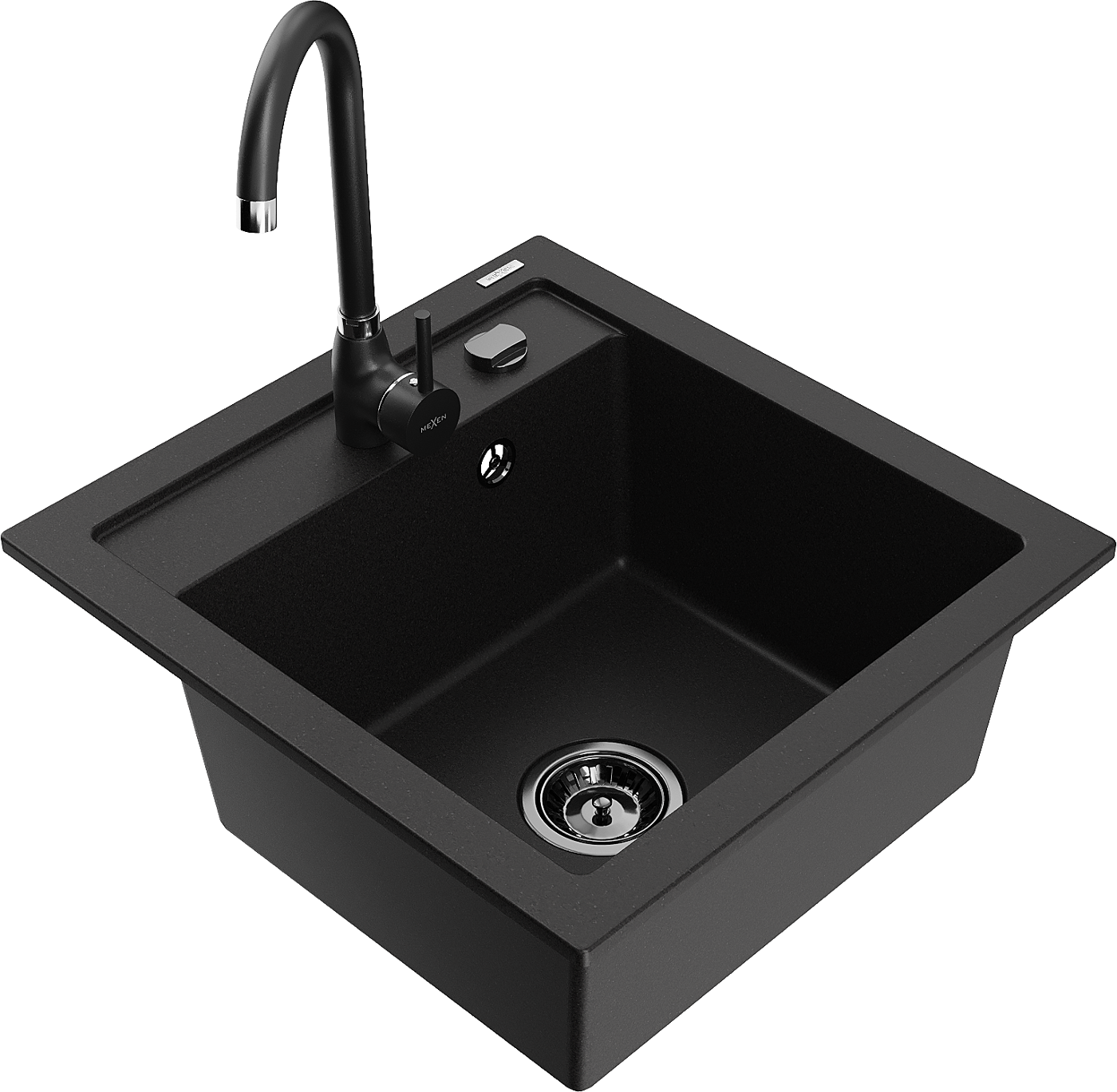 Mexen Vito granieten gootsteen 1-komorig met keukenkraan Telma, zwart - 6503-77-670200-70-B