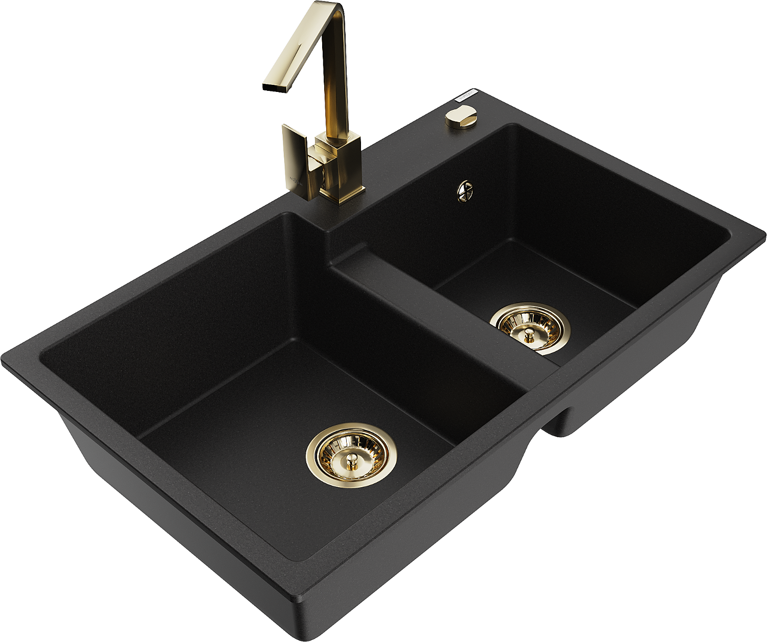 Mexen Tomas granieten gootsteen met 2 compartimenten en keukenmengkraan Rita, zwart - 6516-77-670300-50