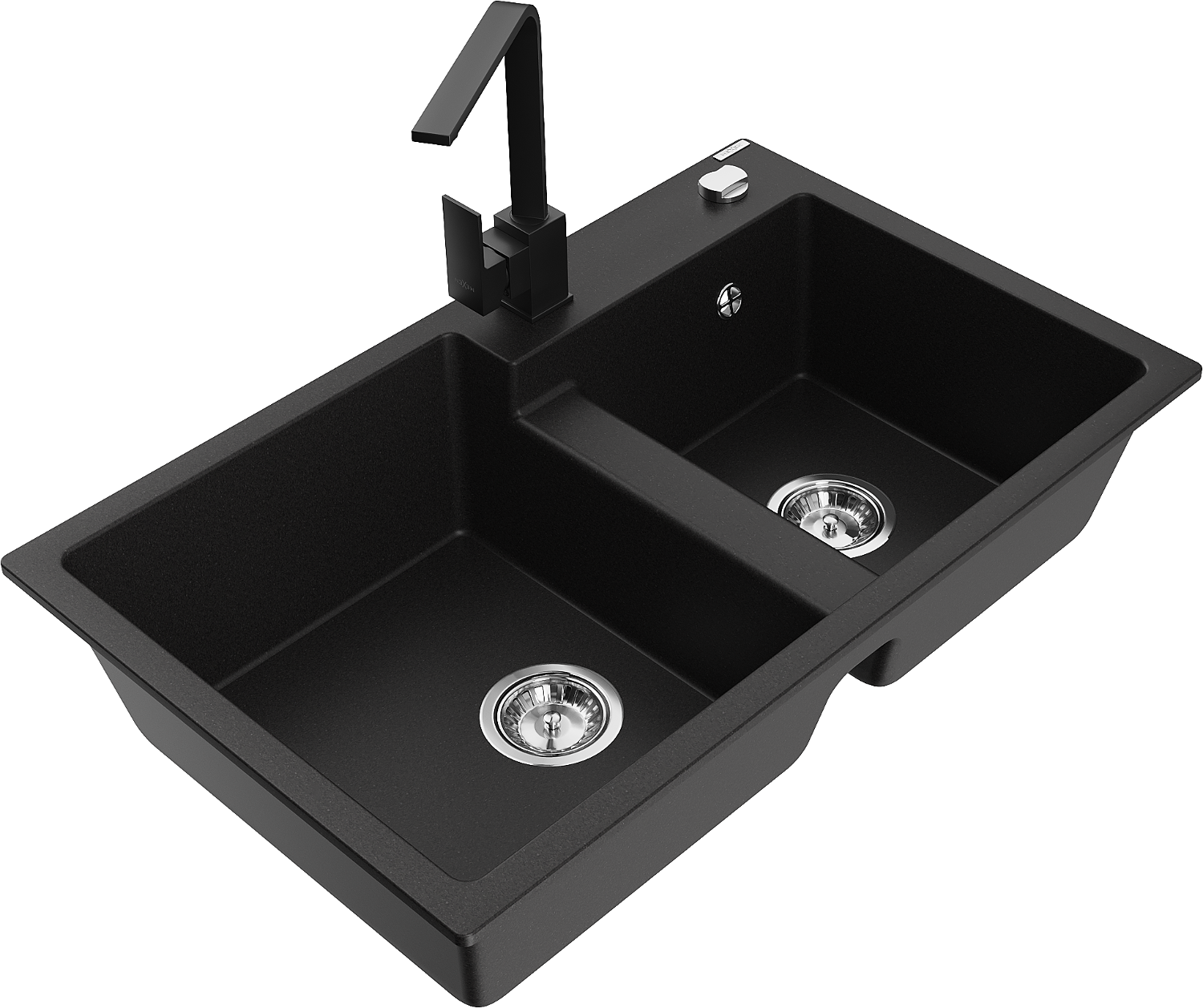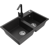 Mexen Tomas granieten gootsteen met 2 compartimenten en keukenmengkraan Rita, zwart - 6516-77-670300-70