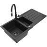 Mexen Andres granieten spoelbak 1,5-komorige met afdruiprek en keukenkraan Savita, zwart/goud - 6515-75-672601-70-B
