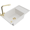 Mexen Elias granieten gootsteen 1-komor met afdruiprek en keukenkraan Duero, beige - 6511-69-671600-50