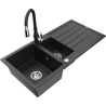 Mexen Andres granieten spoelbak 1,5-komorige met afdruiprek en keukenkraan Savita, zwart - 6515-77-672601-70