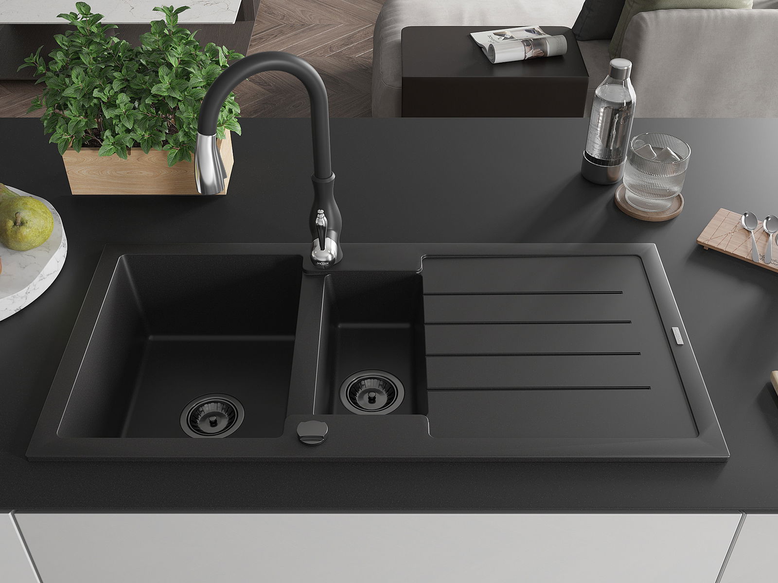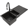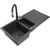 Mexen Andres granieten gootsteen 1,5-kom met afdruiprek en keukenmengkraan Savita, zwart - 6515-77-672601-70-B