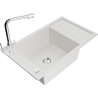Het oppervlak van de gootsteen is bestand tegen vlekken en verkleuringen, waardoor het gemakkelijk schoon te houden is en zijn kleur behoudt gedurende een lange gebruiksperiode. Een esthetische en praktische aanvulling op elke keuken.