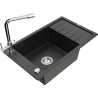 Mexen Elias granieten spoelbak 1-komers met afdruiprek en keukenkraan Duero, zwart - 6511-77-671600-00