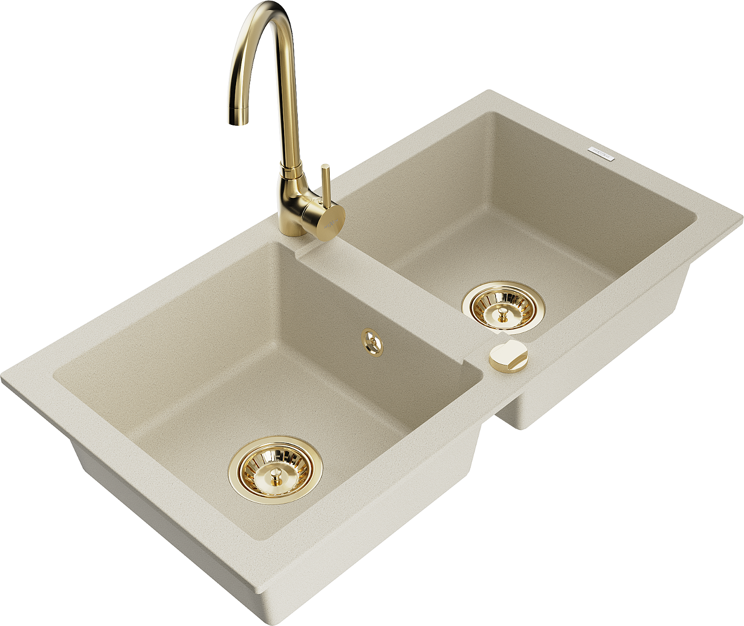 Mexen Mario granieten gootsteen 2-kamer met keukenkraan Telma, beige - 6504-69-670200-50
