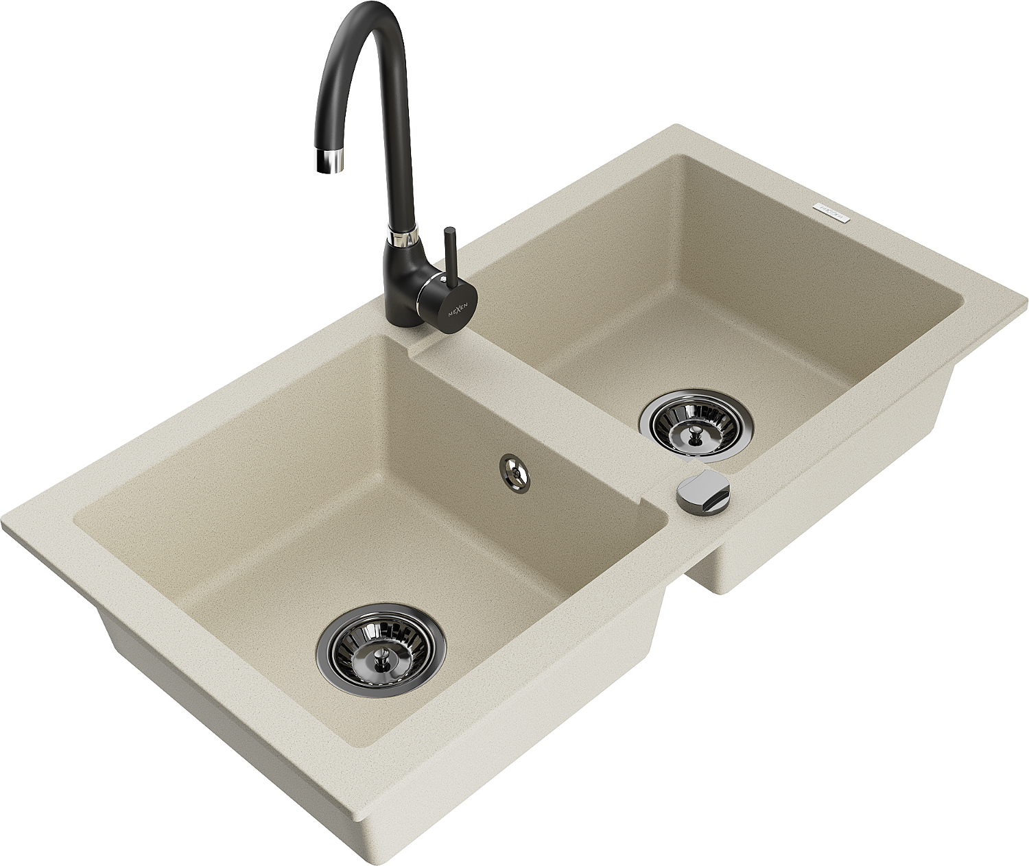 Mexen Mario granieten spoelbak met 2 kamers en Telma keukenkraan, beige - 6504-69-670200-70
