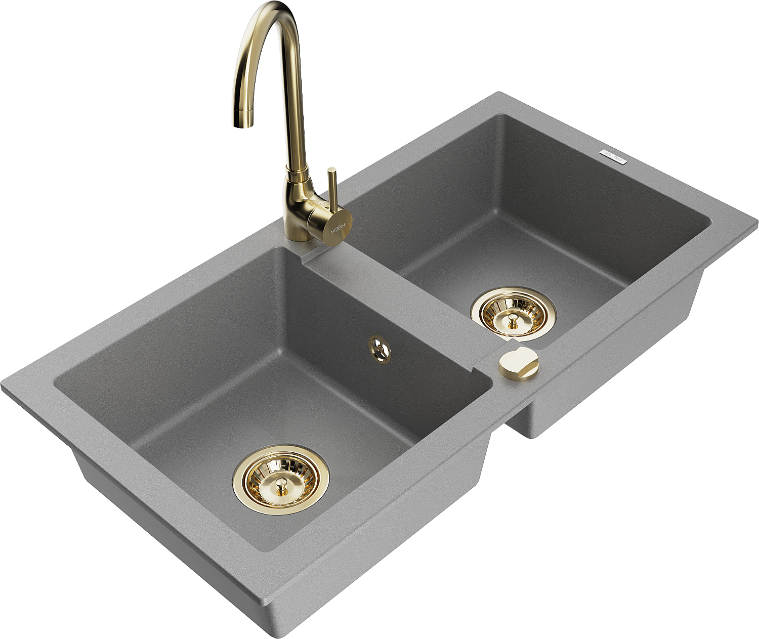 Mexen Mario granieten gootsteen 2-kamers met keukenmengkraan Telma, grijs - 6504-71-670200-50