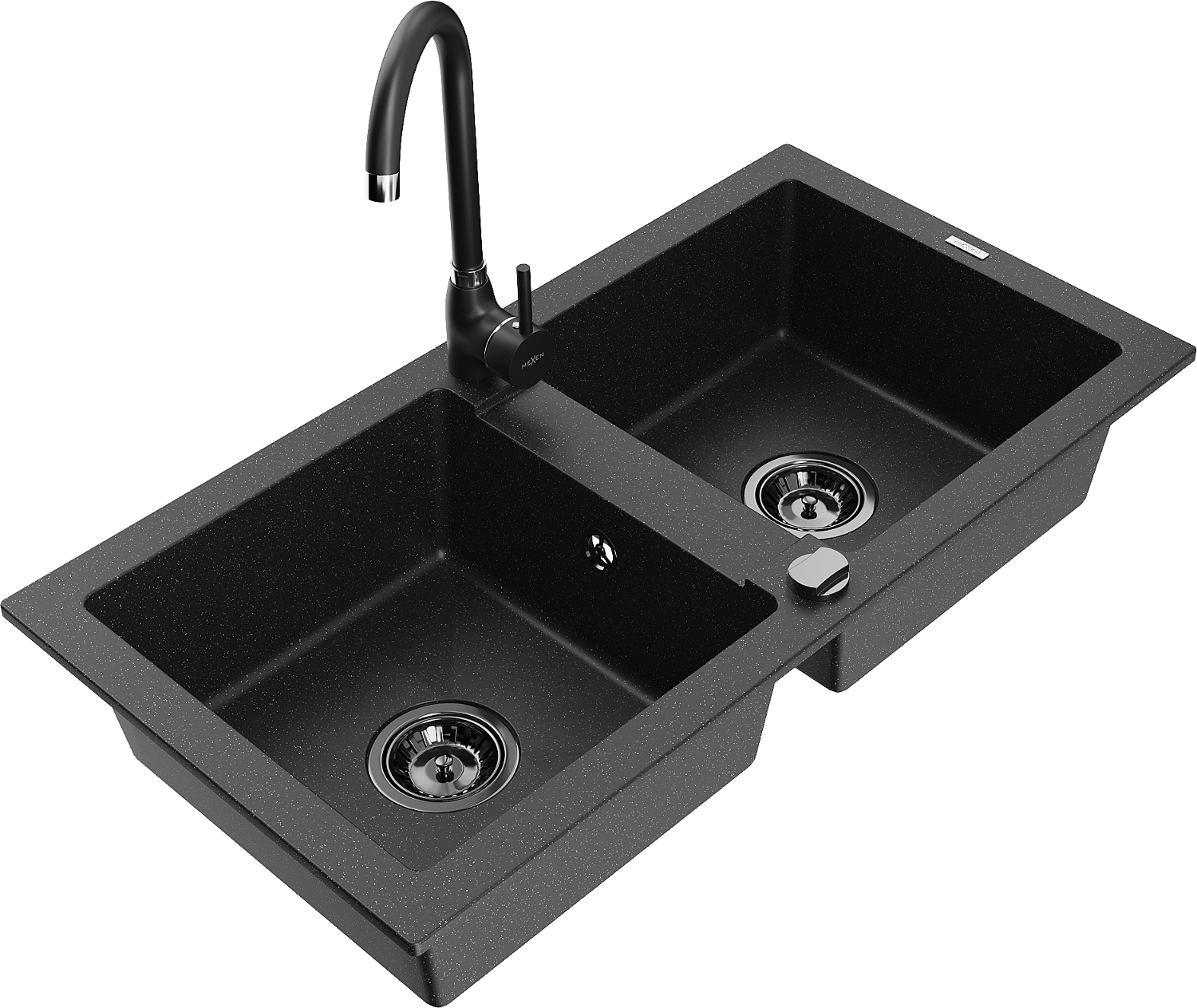 Mexen Mario granieten gootsteen 2-persoons met keukenmengkraan Telma, zwart/zilver - 6504-73-670200-70-B