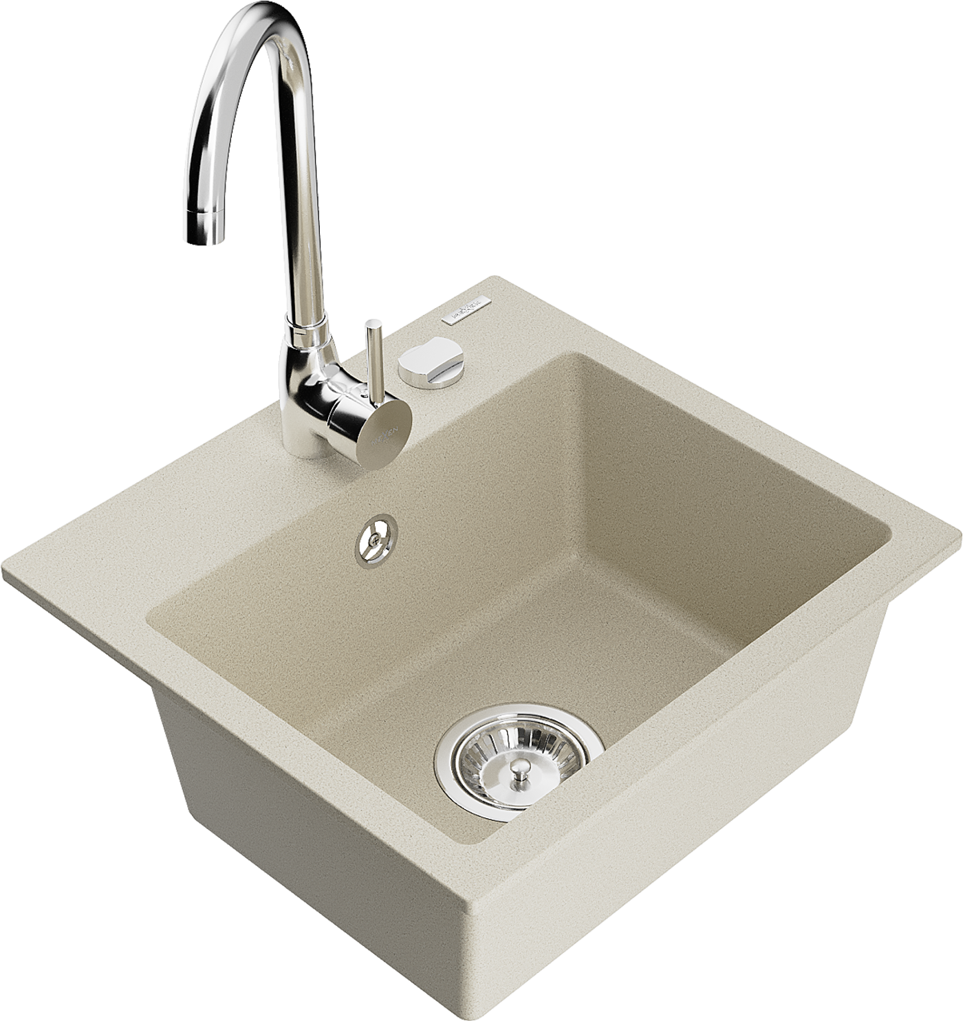 Mexen Milo granieten 1-kompartiment gootsteen met Telma keukenkraan, beige - 6505-69-670200-00