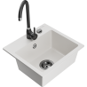 Het oppervlak van de gootsteen is bestand tegen vlekken en verkleuringen, waardoor het gemakkelijk schoon te houden is en zijn kleur behoudt gedurende een lange gebruiksperiode. Een esthetische en praktische aanvulling op elke keuken.