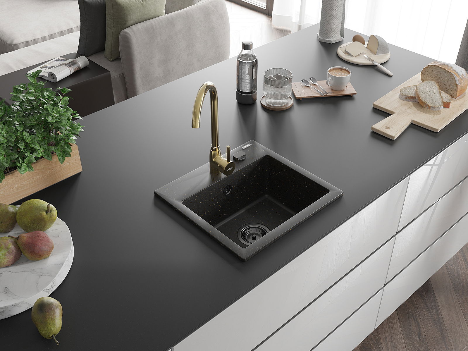 De gootsteen is gemaakt van hoogwaardig graniet. Het vormt een elegante en vooral praktische aanvulling op elke keuken, ongeacht de stijl. De hoge kwaliteit en duurzaamheid van graniet zorgen voor jarenlang gebruik.