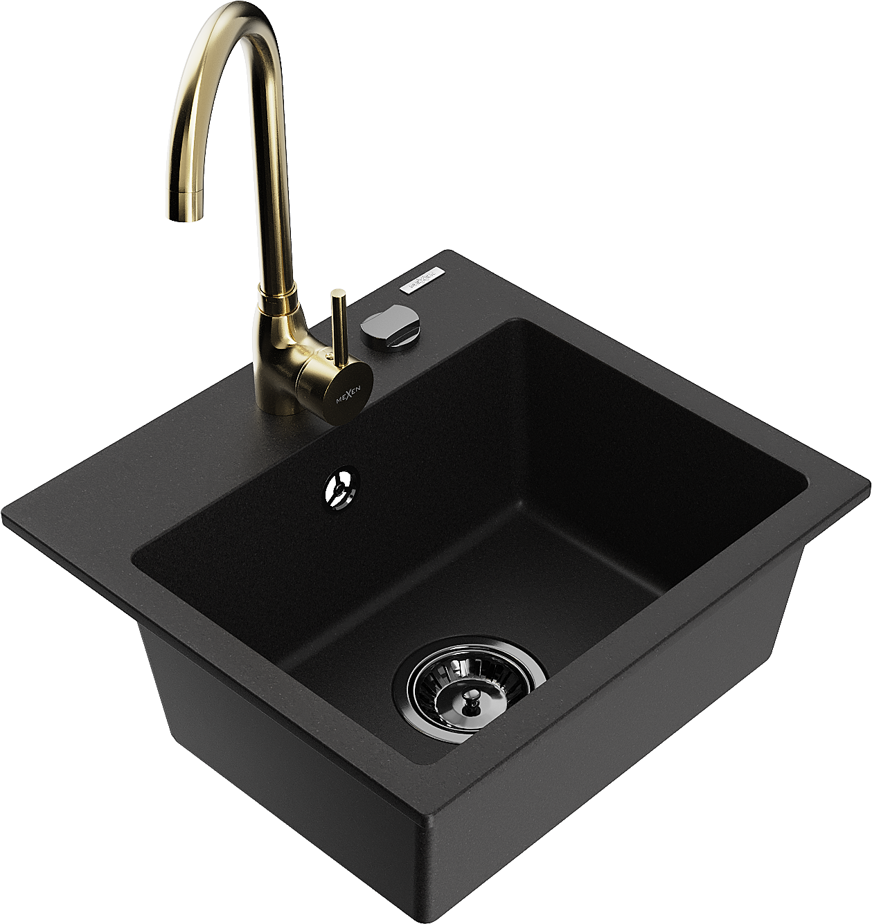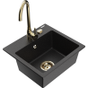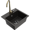 Mexen Milo granieten spoelbak met 1 bak met Telma keukenkraan, zwart - 6505-77-670200-50-B