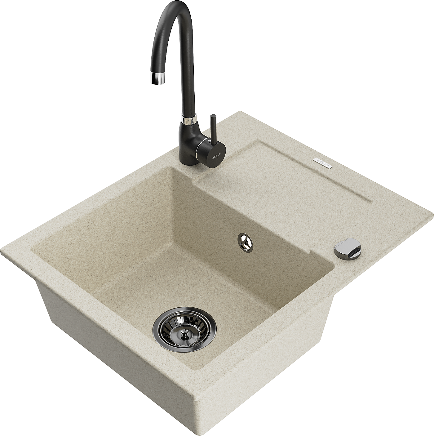 Mexen Enzo granieten spoelbak 1-komers met afdruiprek en Telma keukenkraan, beige - 6506-69-670200-70