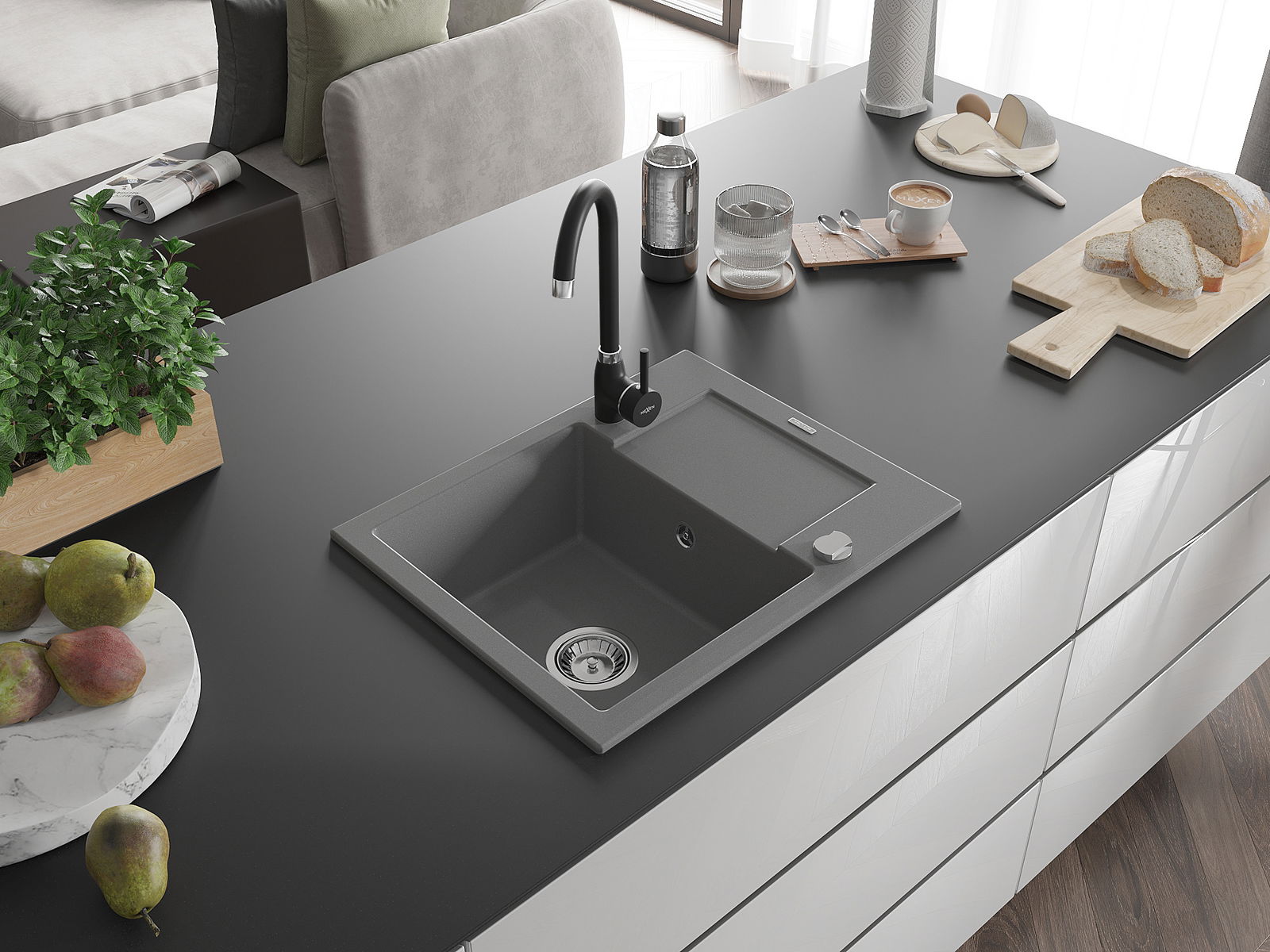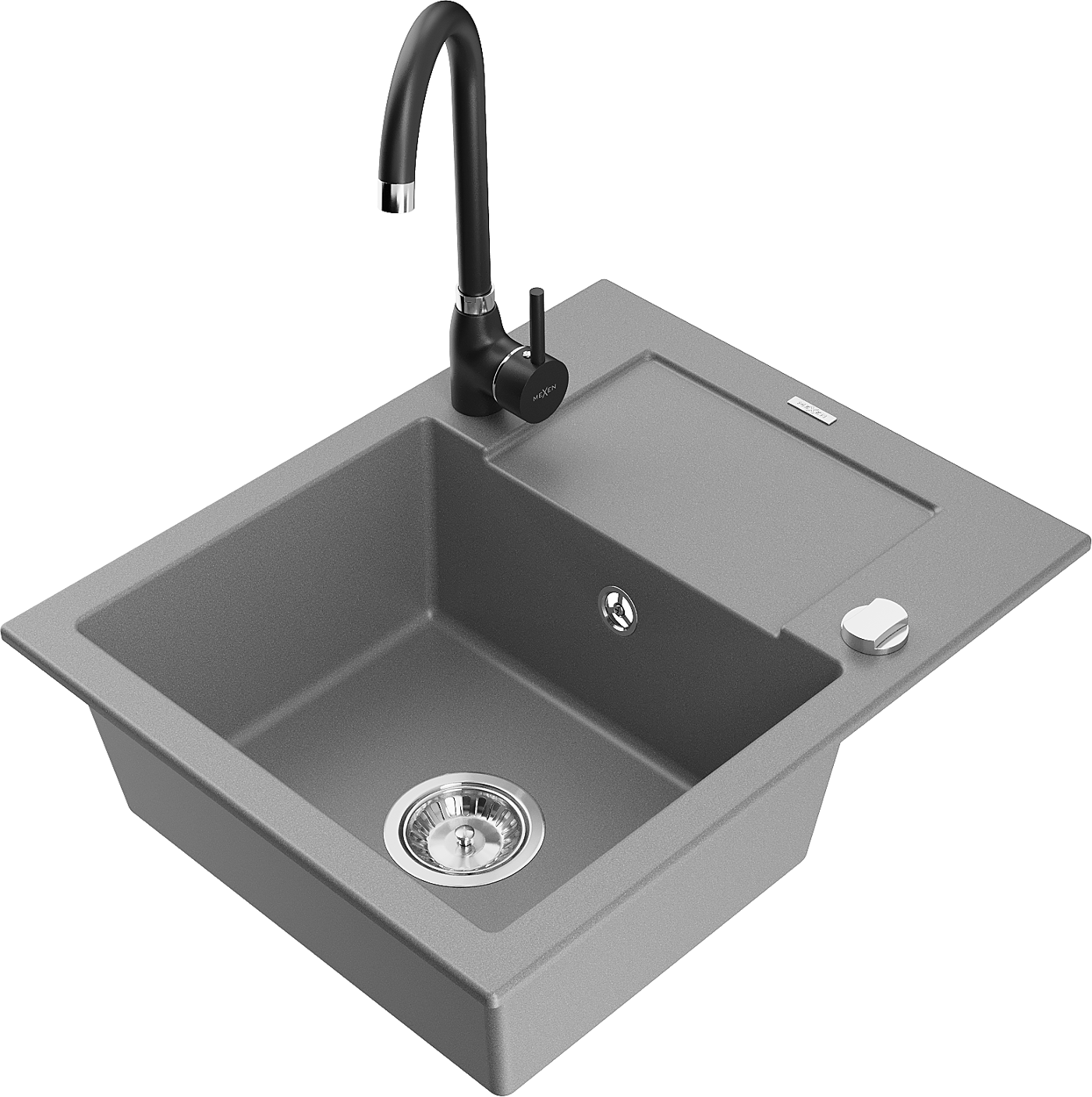 Mexen Enzo granieten spoelbak 1-komers met afdruipplaat en keukenmengkraan Telma, grijs - 6506-71-670200-70