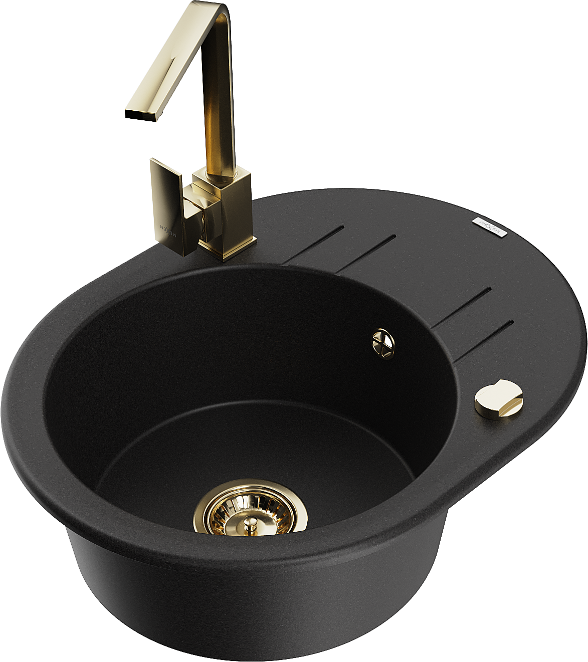Mexen Kevin granieten spoelbak 1-komor met afdruiprek en keukenmengkraan Rita, zwart - 6517-77-670300-50