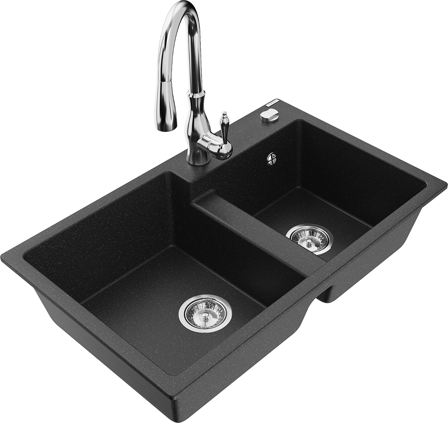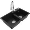 Mexen Tomas granieten 2-baks gootsteen met keukenmengkraan Savita, zwart/zilver metallic - 6516-73-672601-00