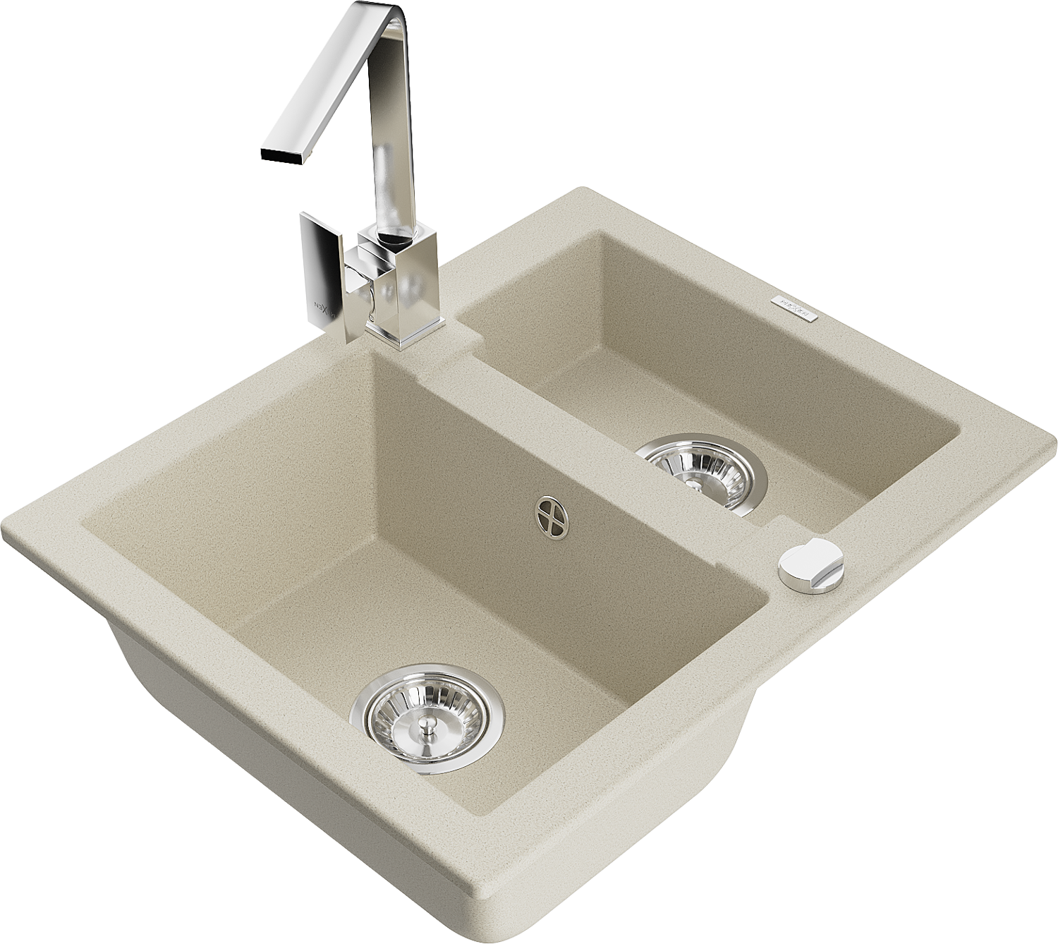 Mexen Carlos granieten gootsteen 1,5-komorige met keukenmengkraan Rita, beige - 6518-69-670300-00