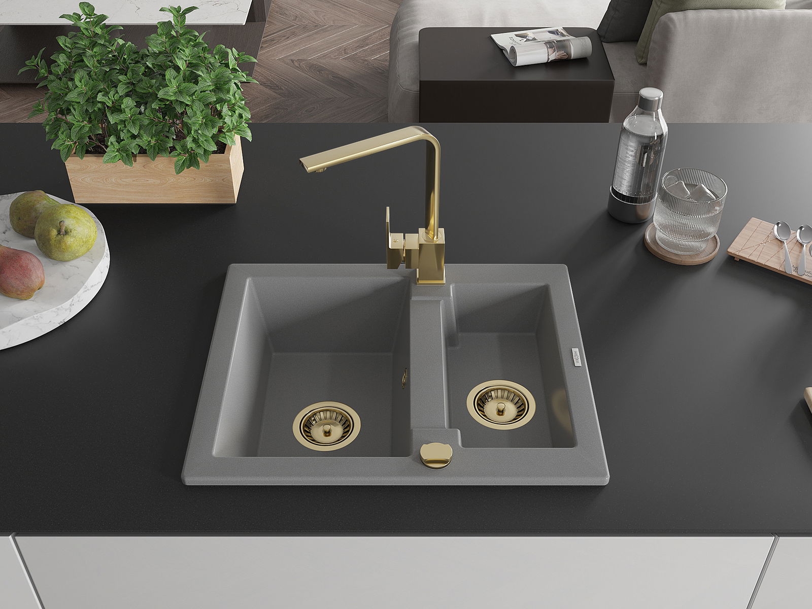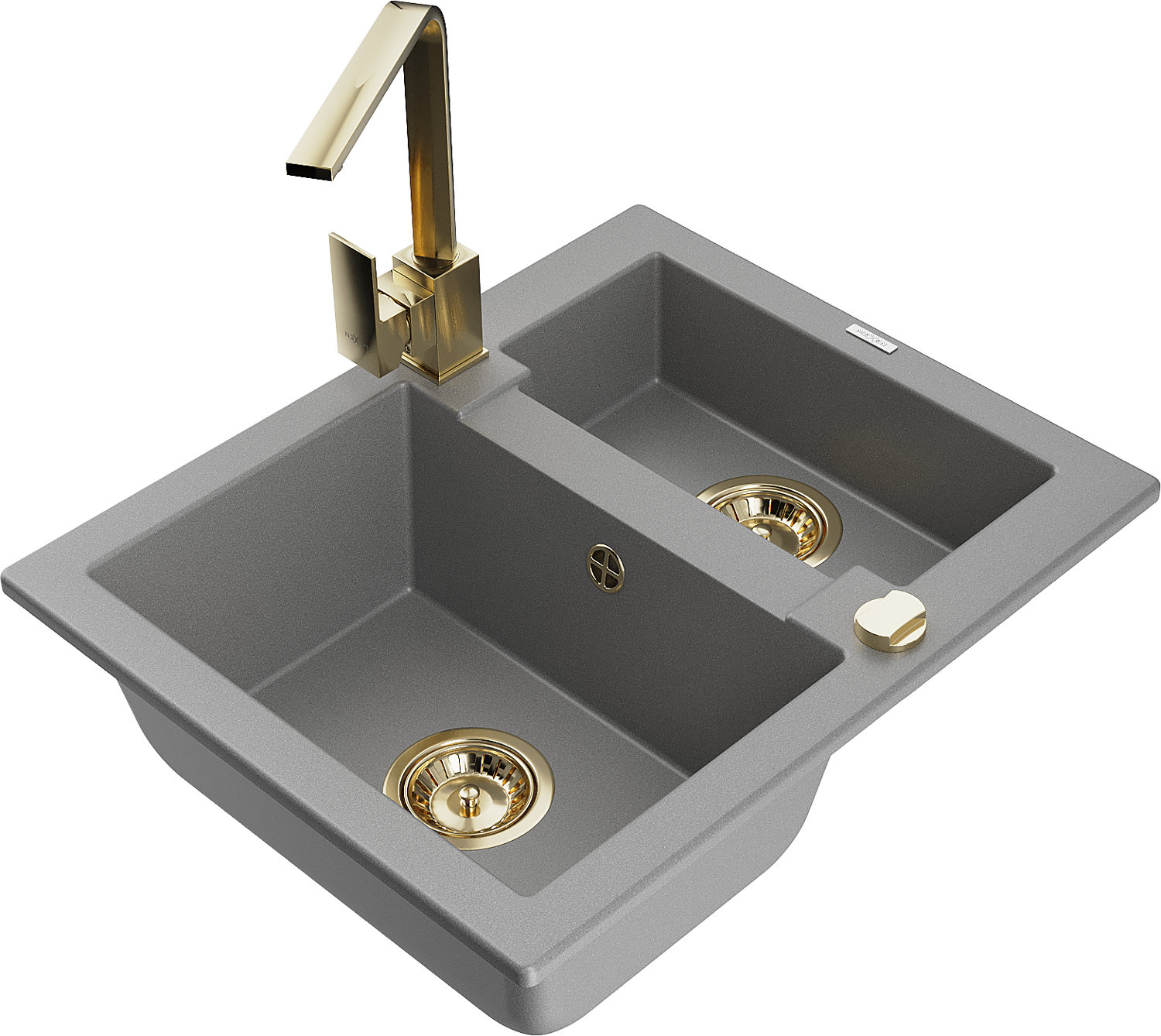 Mexen Carlos granieten spoelbak 1,5-kamer met keukenmengkraan Rita, grijs - 6518-71-670300-50