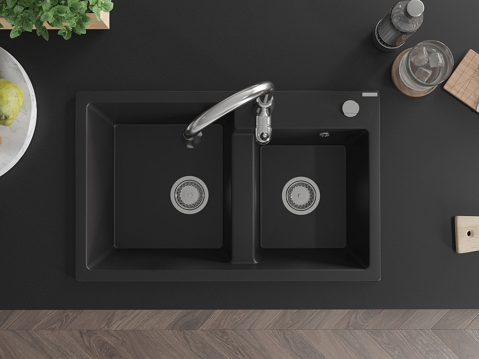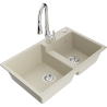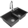 Mexen Tomas granieten gootsteen met 2 kamers en keukenkraan Savita, zwart - 6516-77-672601-00