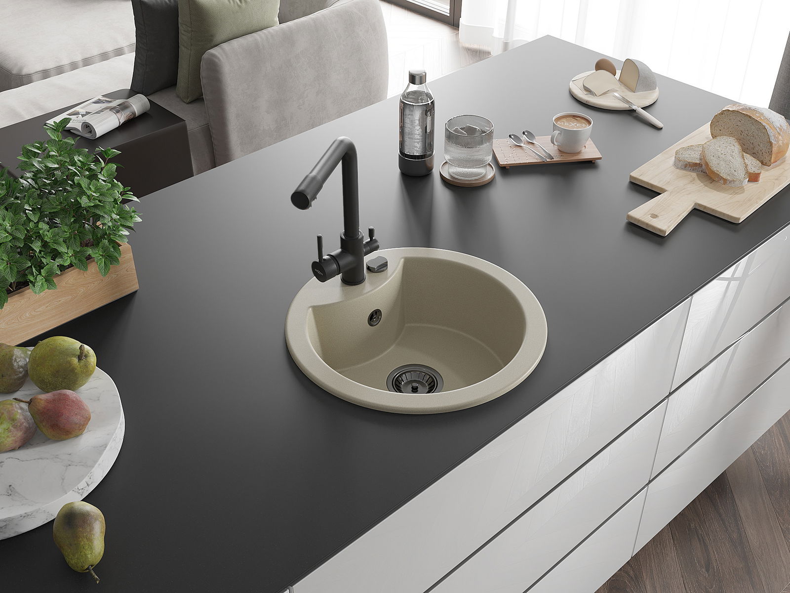 De gootsteen is gemaakt van hoogwaardig graniet. Het vormt een elegante en vooral praktische aanvulling op elke keuken, ongeacht de stijl. De hoge kwaliteit en duurzaamheid van graniet zorgen voor jarenlang gebruik.