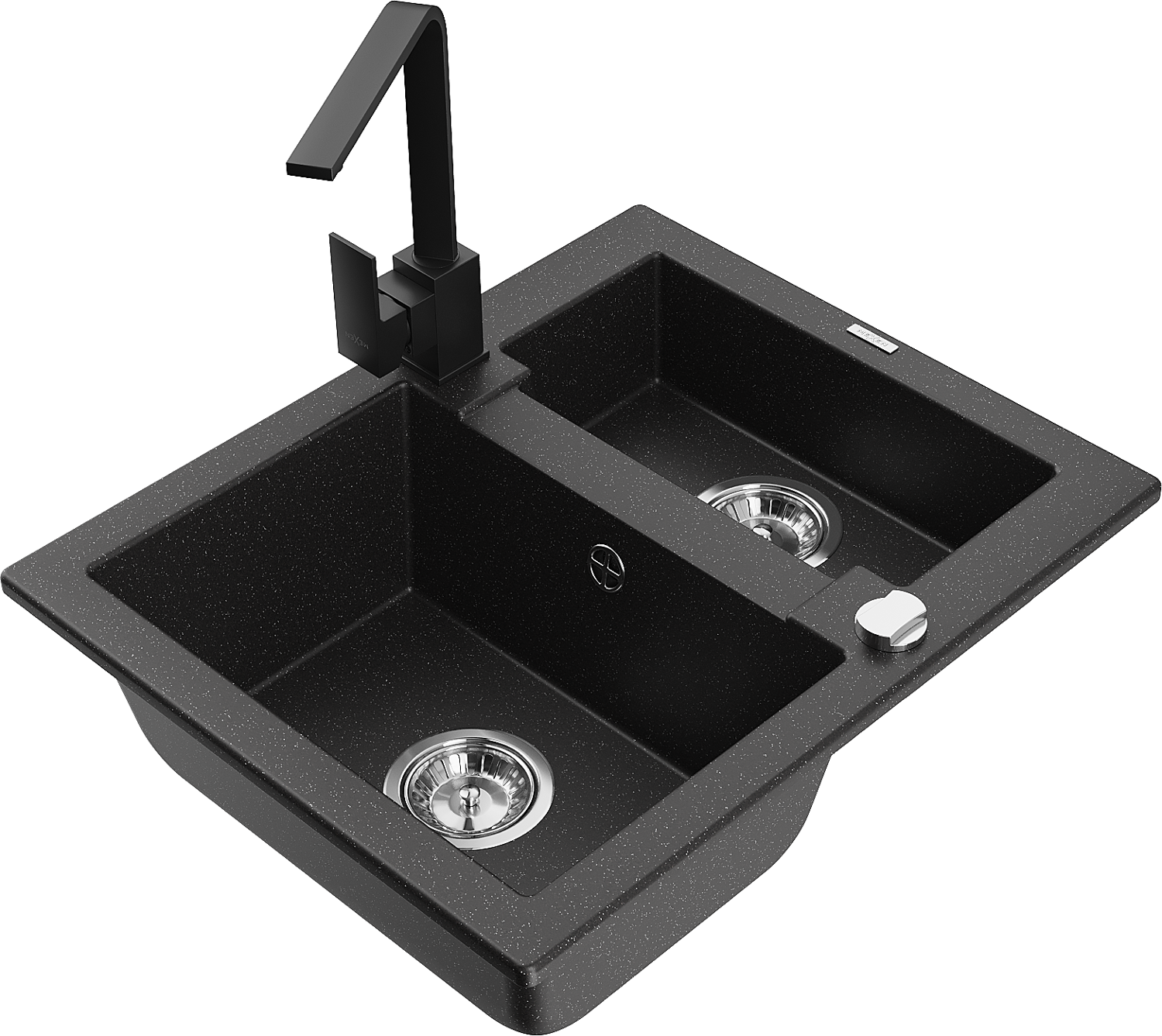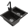 Mexen Carlos granieten spoelbak 1,5-baks met keukenmengkraan Rita, zwart/zilver metallic - 6518-73-670300-70