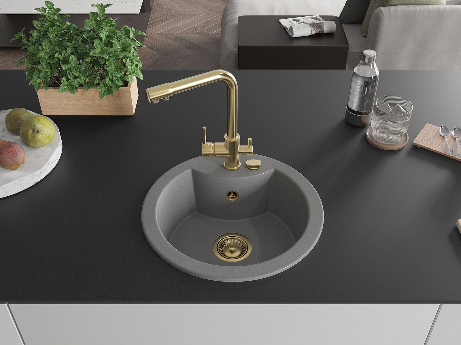 De gootsteen is gemaakt van hoogwaardig graniet. Het vormt een elegante en vooral praktische aanvulling op elke keuken, ongeacht de stijl. De hoge kwaliteit en duurzaamheid van graniet zorgen voor jarenlang gebruik.