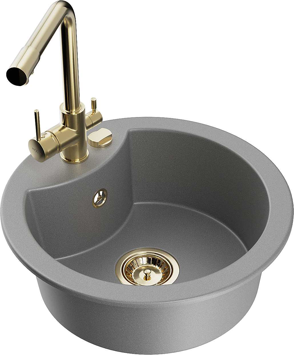 Mexen Diego granieten spoelbak met 1 bak en Duero keukenkraan, grijs - 6512-71-671600-50