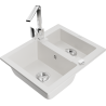 Het oppervlak van de gootsteen is bestand tegen vlekken en verkleuringen, waardoor het gemakkelijk schoon te houden is en zijn kleur behoudt gedurende een lange gebruiksperiode. Een esthetische en praktische aanvulling op elke keuken.