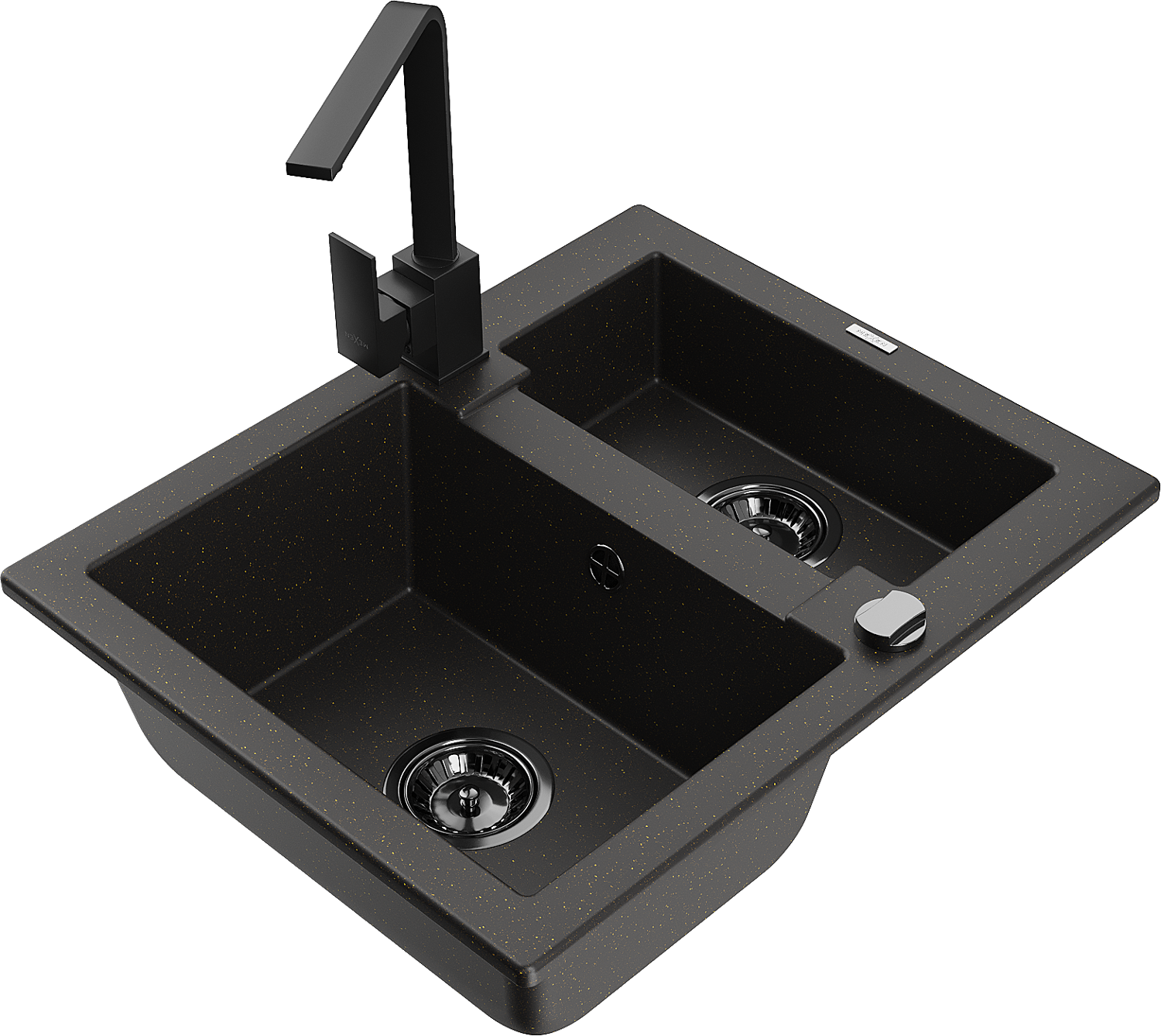 Mexen Carlos granieten gootsteen 1,5-kamer met keukenkraan Rita, zwart/gouden metallic - 6518-75-670300-70-B